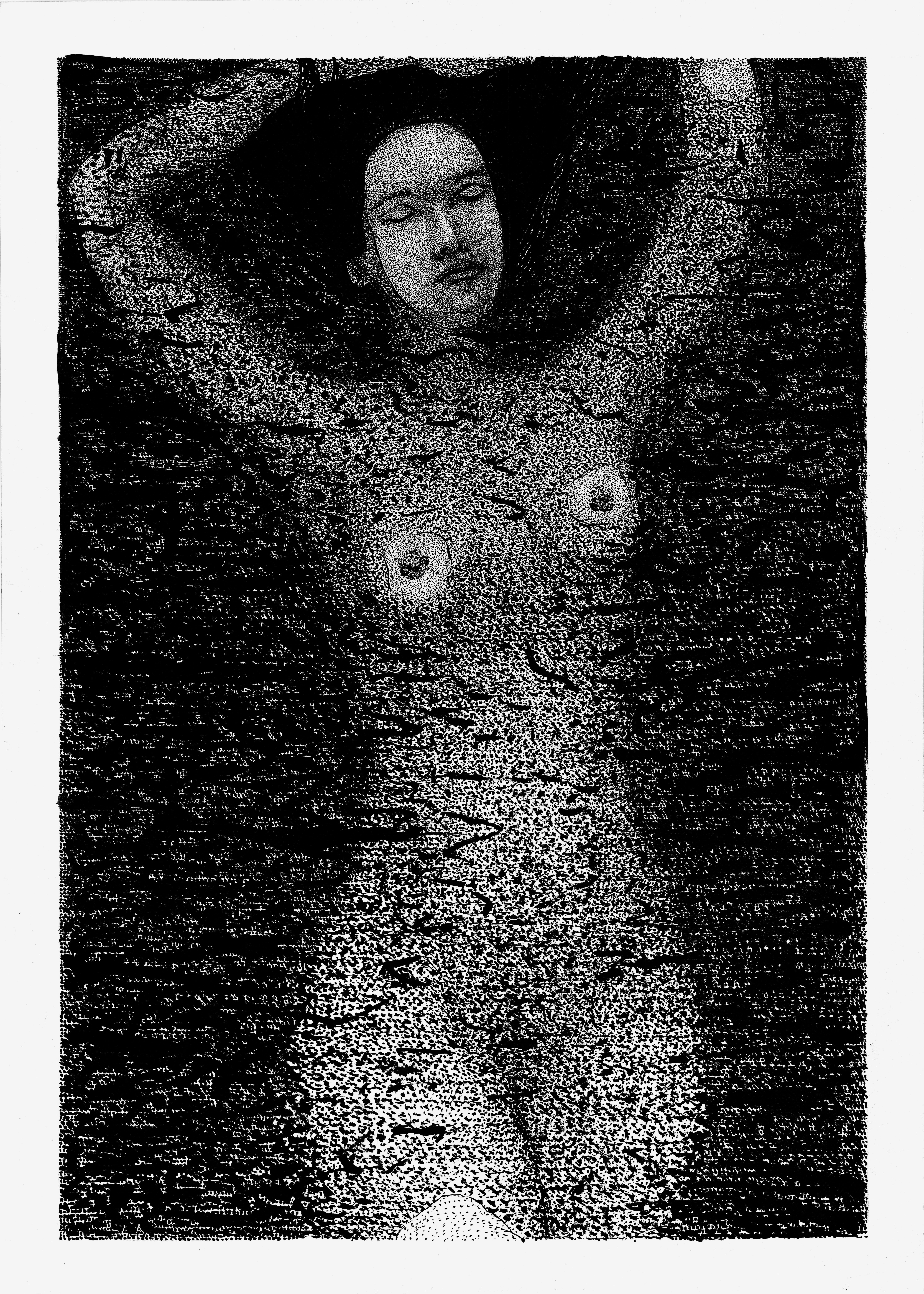 Oglądanie prac artysty to podróż tam i z powrotem pomiędzy dwoma wymiarami: z baśniowego ogrodu przenosimy się do wrzącego kotła pramaterii. Pod maską lirycznej ilustracji kryje się atomistyczny abstrakcjonizm, ale też i na odwrót – z bełkotu nicości wylęgają się protagoniści nowej opowieści."